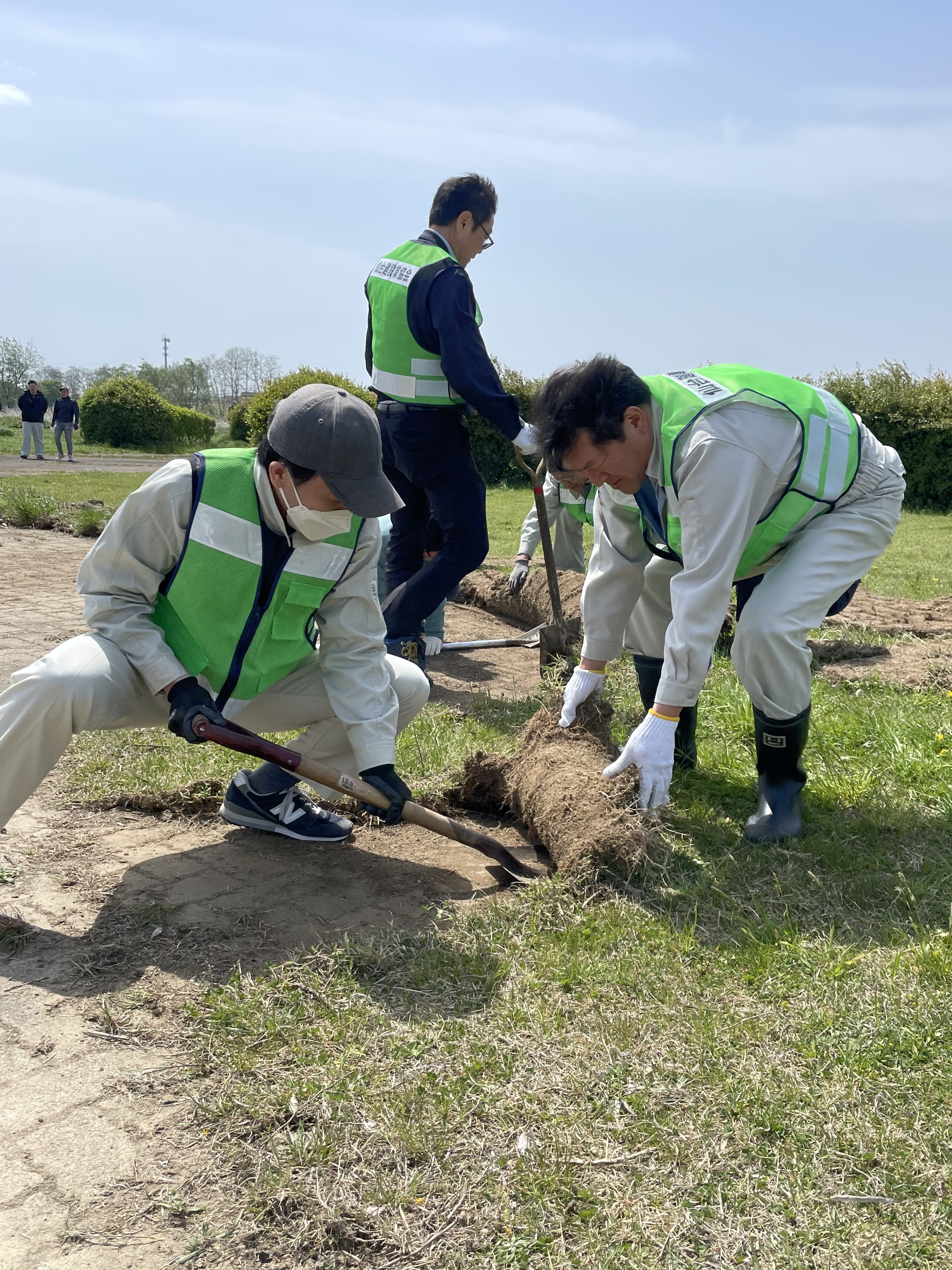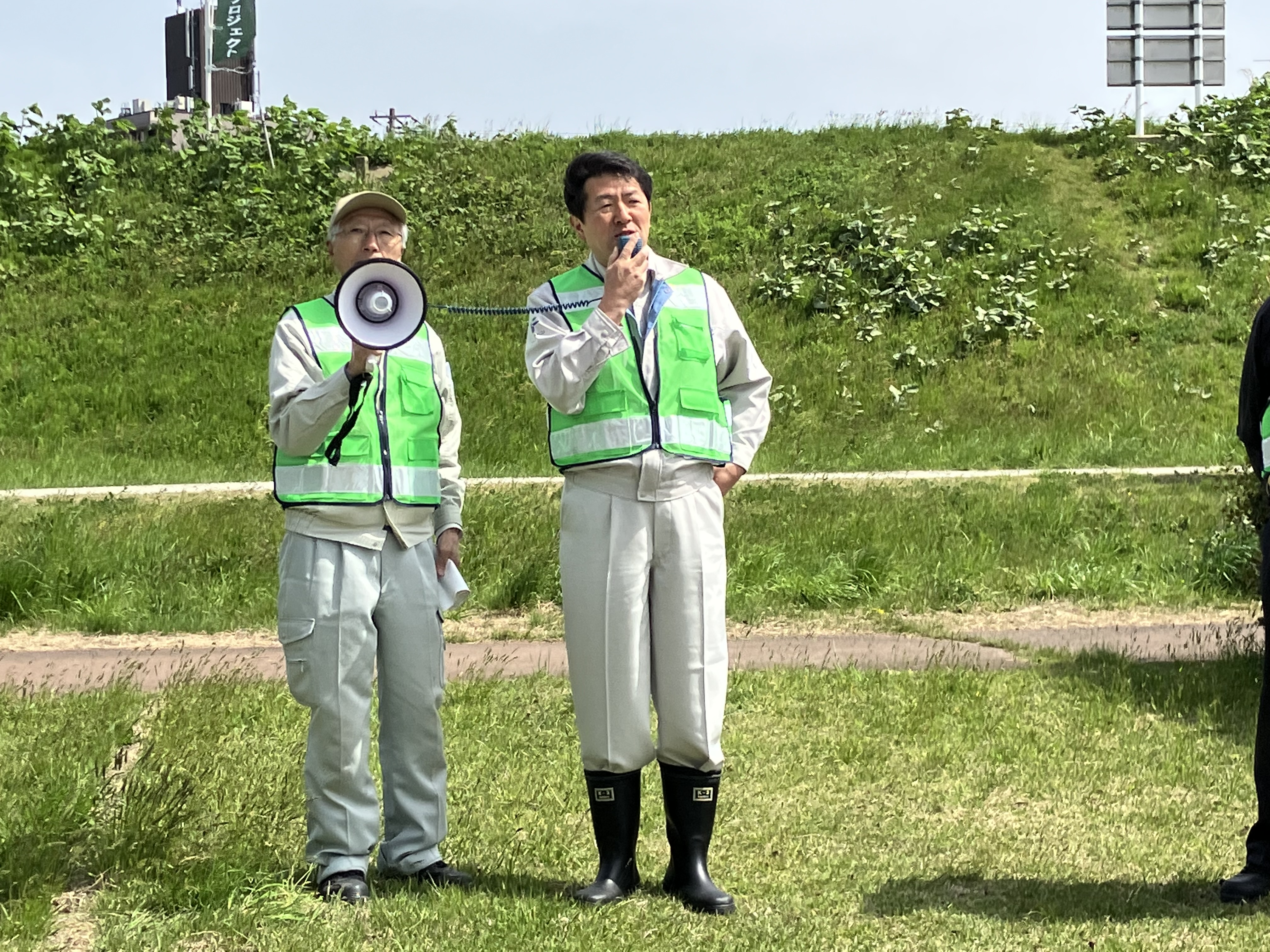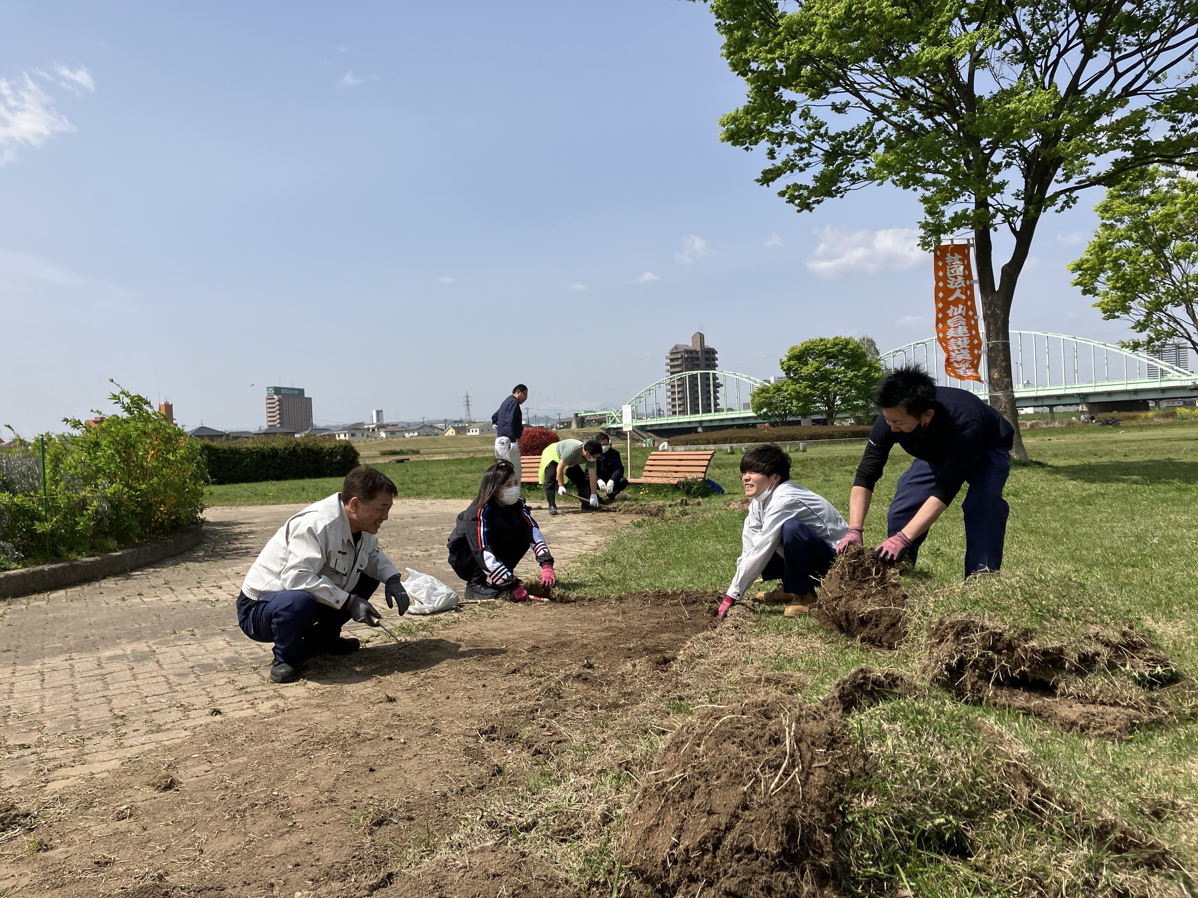 令和5年4月22日(土)仙台市の千代大橋会場にて、第33回広瀬川流域一斉清掃に会員会社(52社)179名が参加しました。