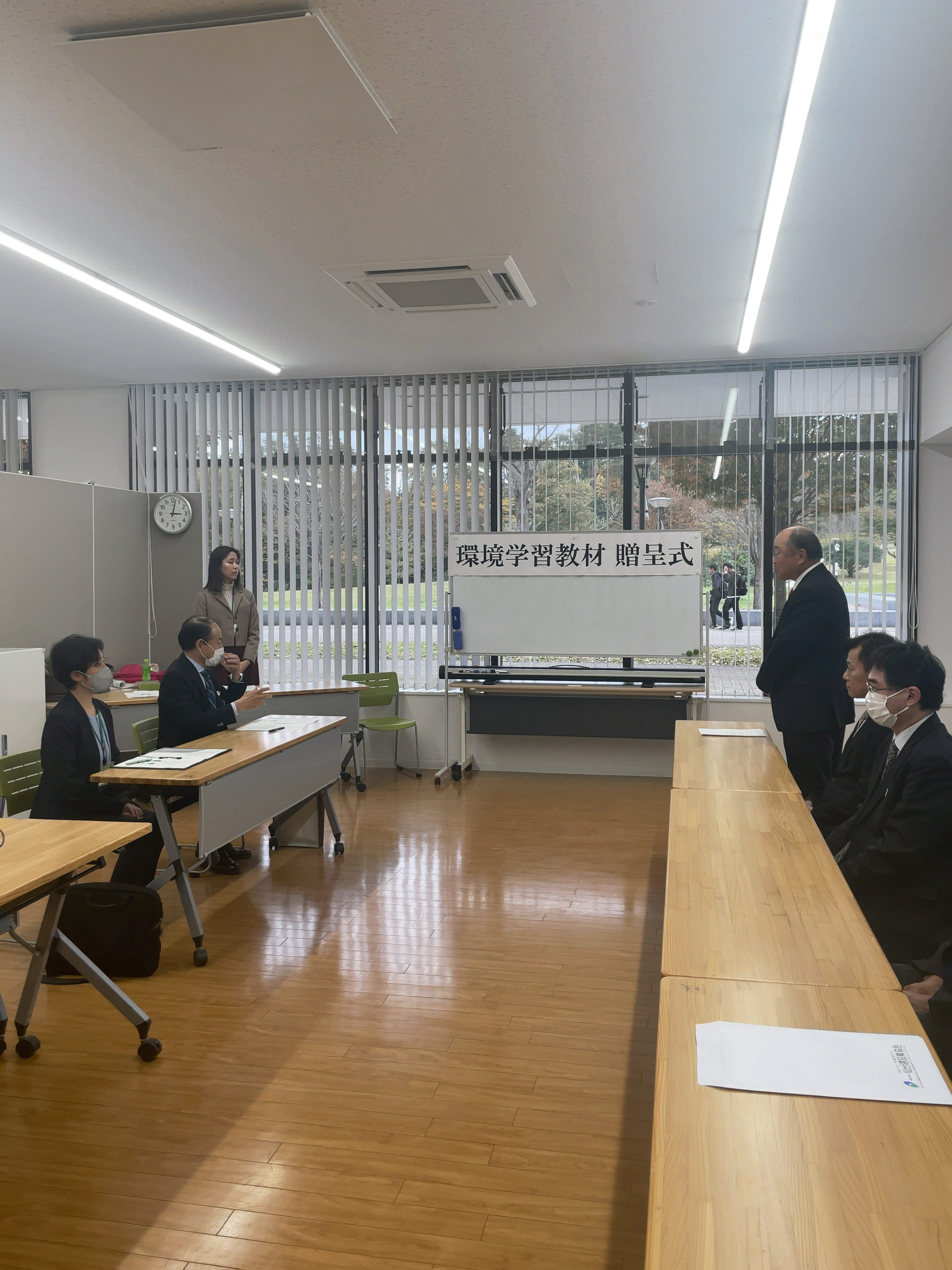 令和5年11月6日(月)に環境福祉委員長、佐藤委員、加瀬委員および事務局が、せんだい環境学習館「たまきさんサロン」(東北大学大学院環境科学研究科1階)を訪問し、環境学習教材(デジタルUSB顕微鏡3台とモニタリングスコープ4.3液晶2台)を贈呈いたしました。