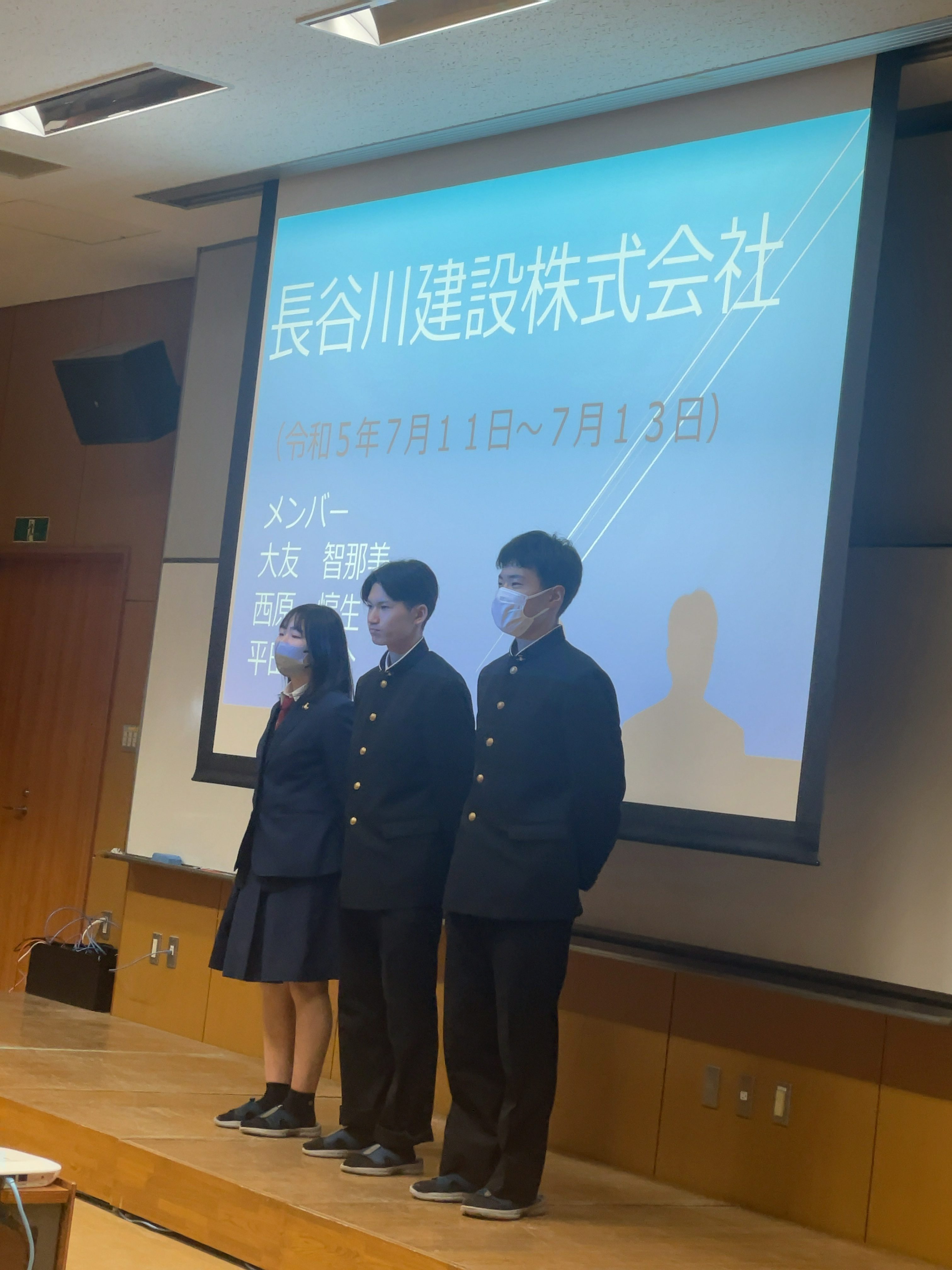 この発表会は、会員会社のご協力のもと、令和5年7月11~13日の3日間で行われた現場実習体験を、グループごとにパワーポイントを使って発表するものです。