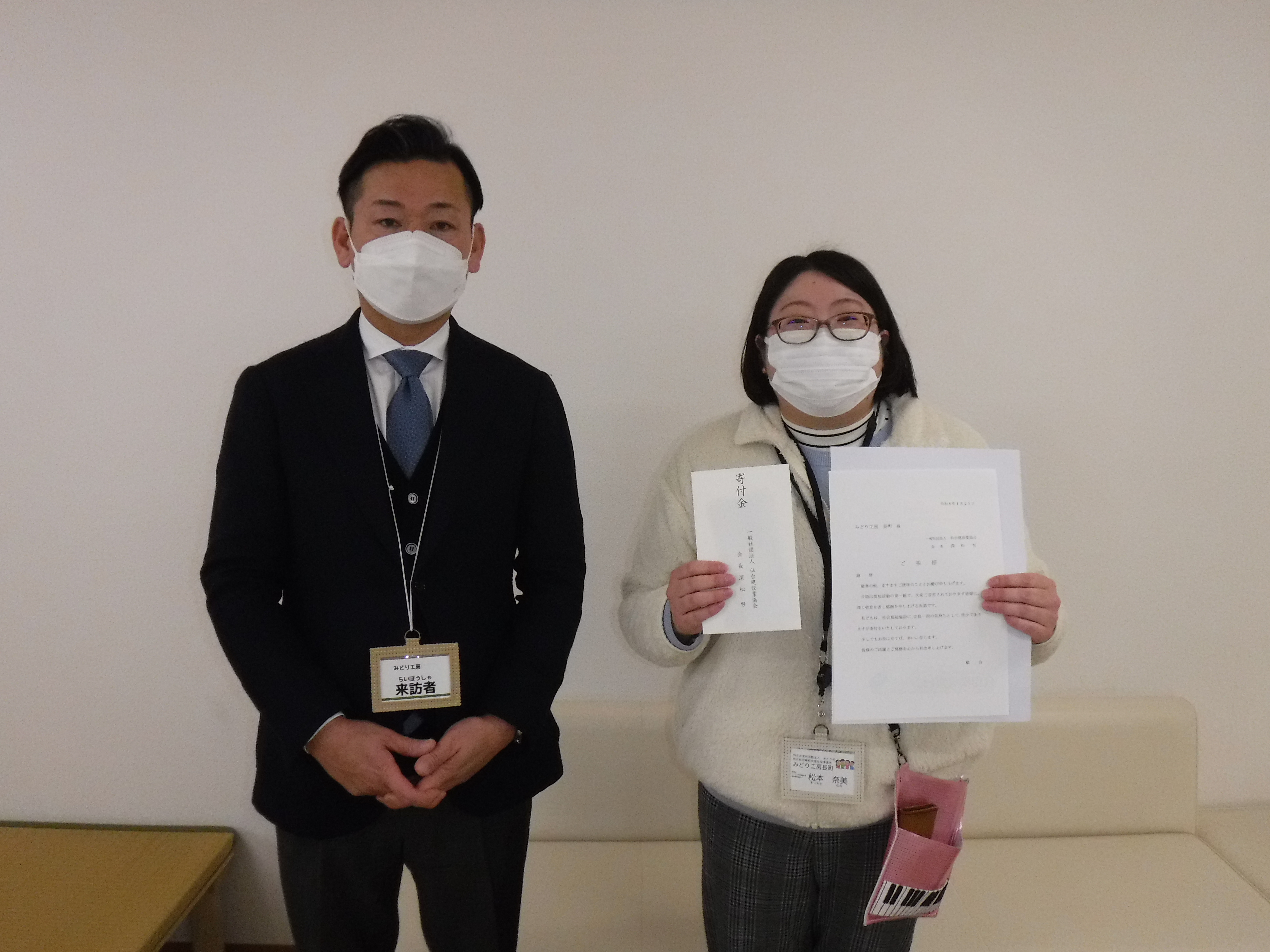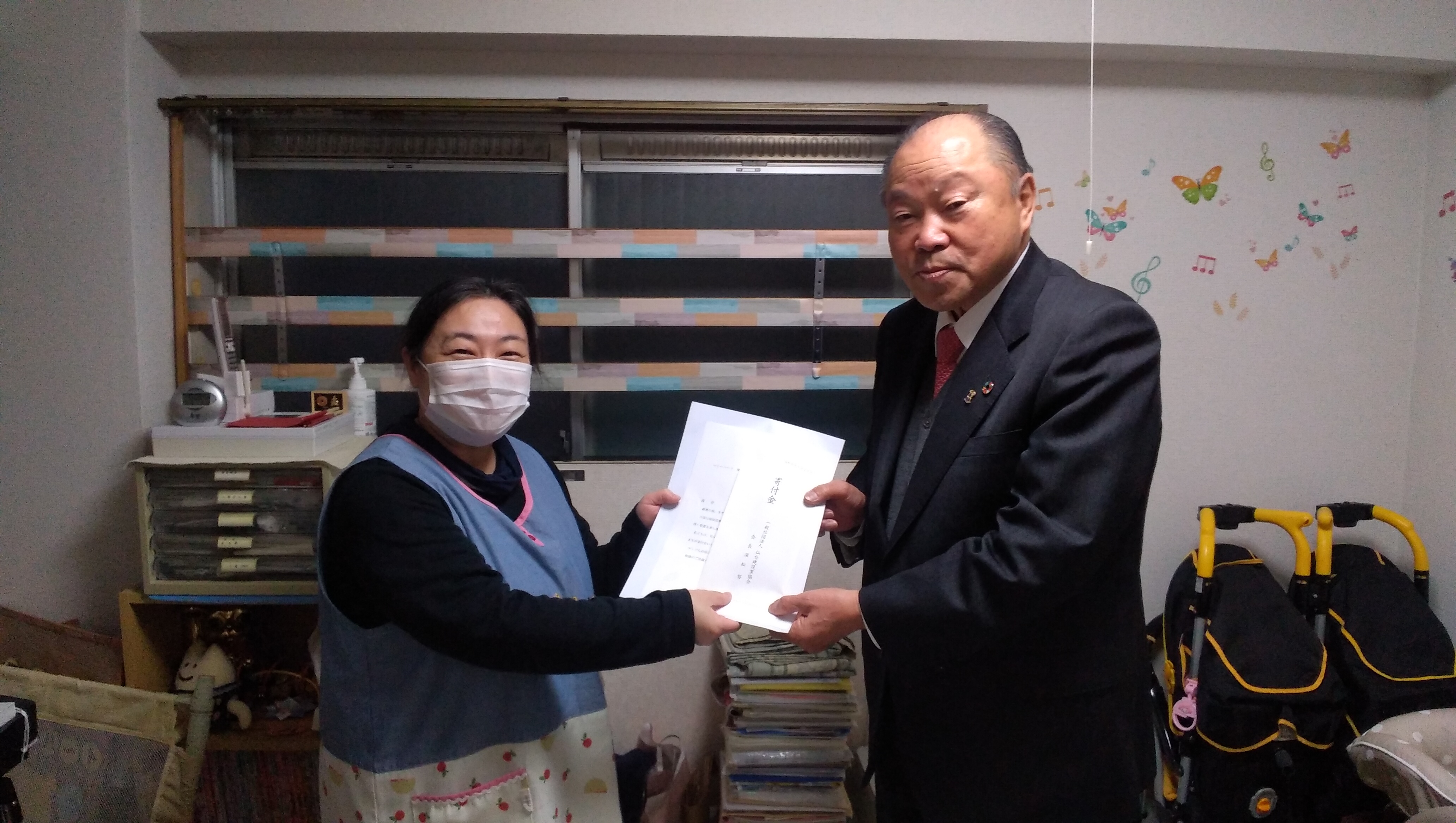 - 仙台市内の社会福祉施設を訪問し、寄付金を贈呈いたしました。