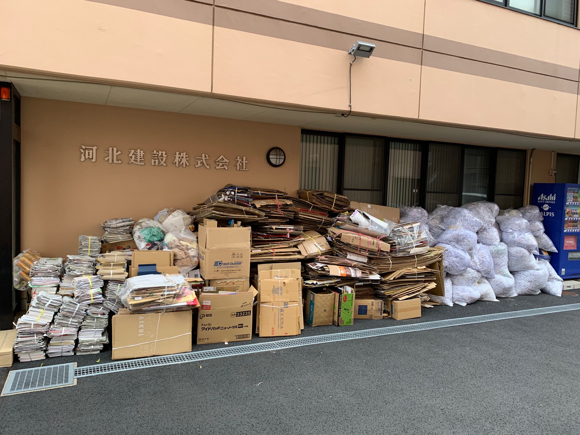 仙建協事務局も単独で資源ごみを集積し回収していただきました。