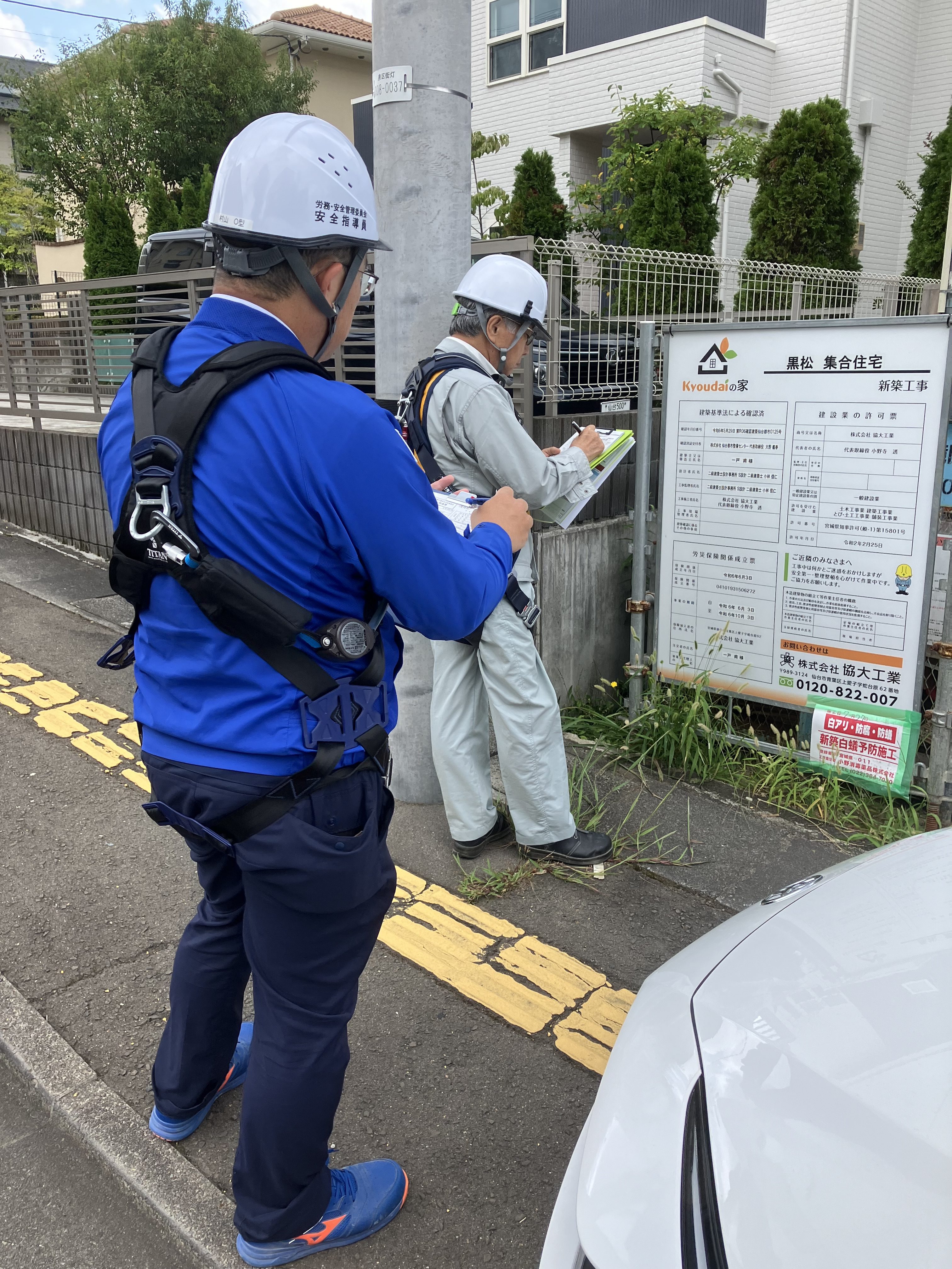 また、パトロールは、木建委員会・足場リース協会の加藤指導員、仙建協・安全指導員会の村山指導員(㈱橋本店)が担当しました。加えて、仙台労働基準監督署から1名、宮城労働基準協会の菅野氏が帯同しました。