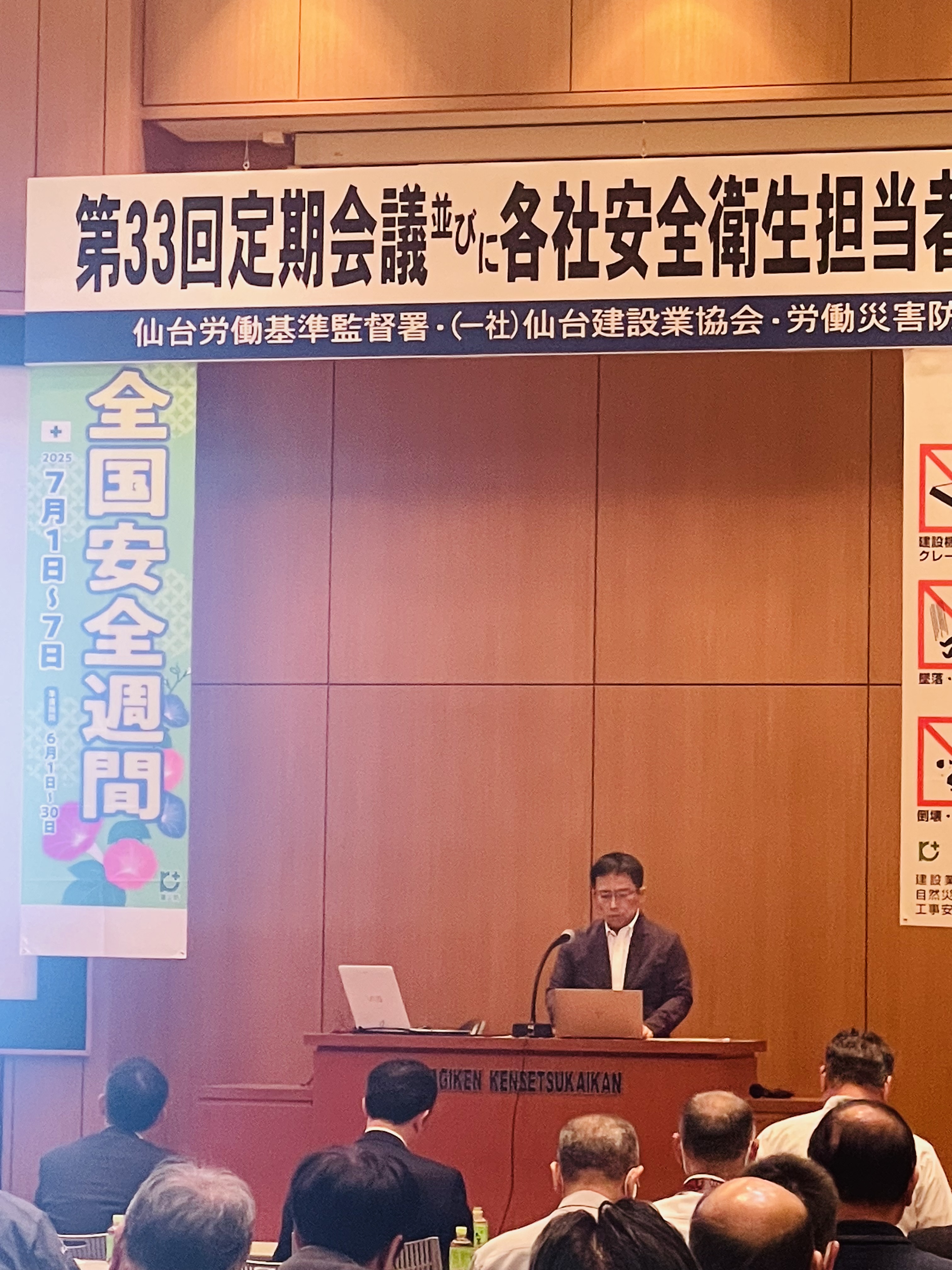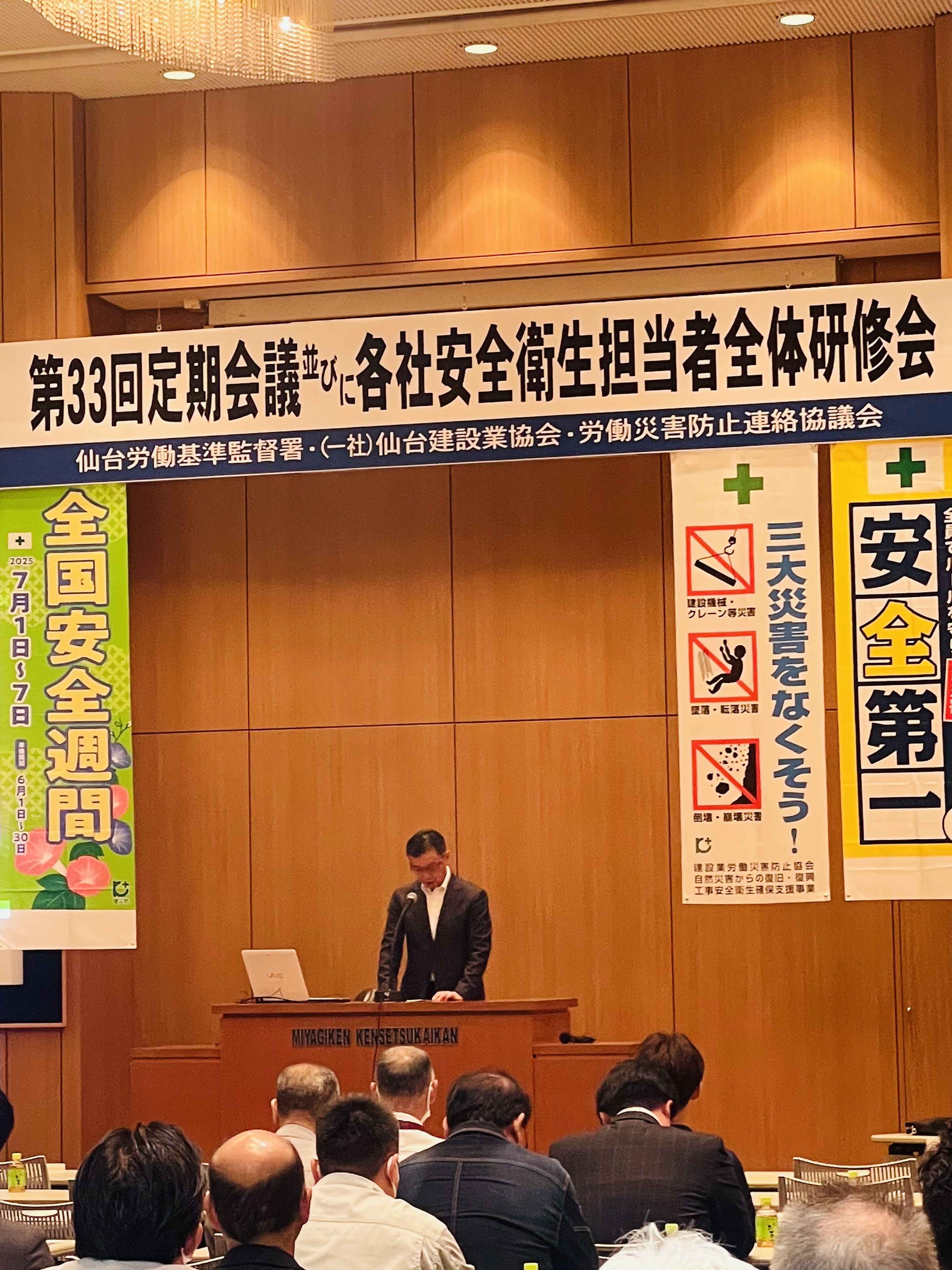 令和7年6月3日(火)13時30分より、宮城県建設産業会館1階大会議室において、仙台労働基準監督署と当協会で組織する労働災害防止連絡協議会の、第33回定期会議並びに各社安全衛生担当者全体研修会を開催いたしました。