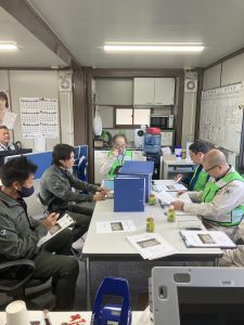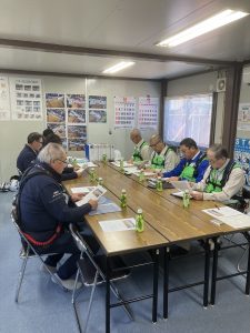 現場事務所で関係書類を点検をしたあと、現場代理人より工事概要の説明を受け、現場を検分しました。