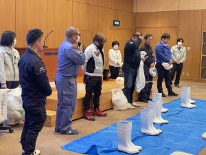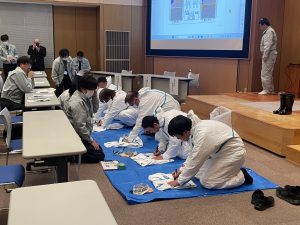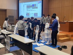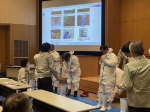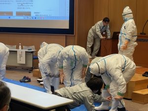 今回は、埋却の研修と防護服の脱着訓練をしました。
